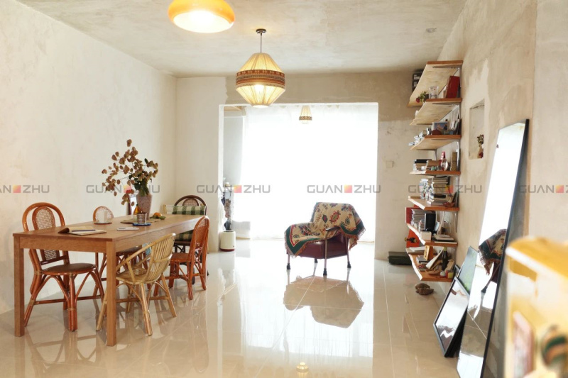 屋主千豆希望这个家能带来一种温暖、质朴的感觉。正因如此,他们选择了云顶国际希里空-奶黄来实现这大美筑家。屋主千豆说:“当阳光透过窗户洒在地板和墙面上,我仿佛回到了清澈湖水旁的土房子——平静的水面倒映着一个小小的家,自然又温暖。”
