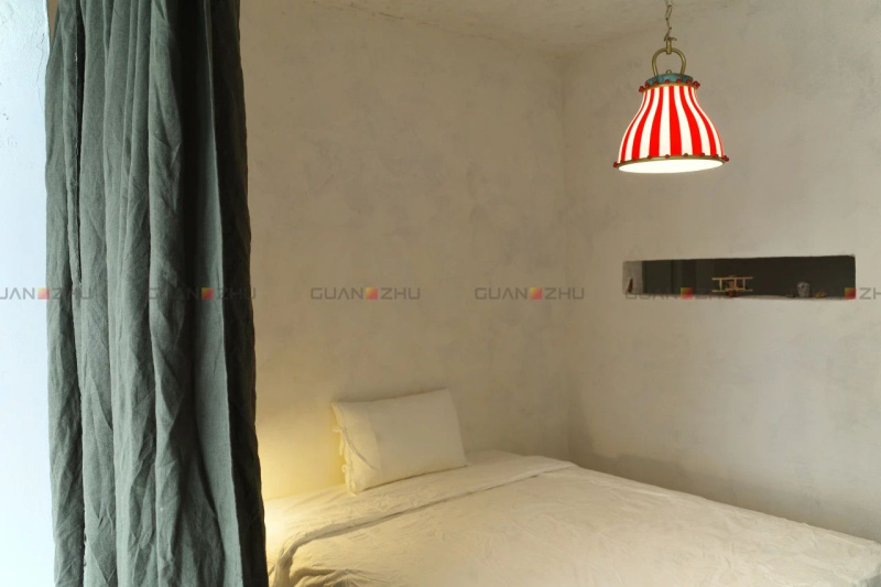 像调整相机参数那样,屋主千豆调配出新家的“色彩配方”,当柔和的光线与温暖的颜色在空间里相互交织、叠加,增添宁静的疗愈气息。卧室设计异形门洞,侧面挖了一个长条形壁龛,每次经过,景色就随着脚步变化,拼接出不同的镜头画面,而每一条手工磨平的棱角,都给人带来满满安全感。