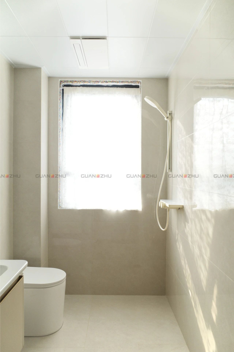 卫生间在屋主千豆的眼中,不止是一个功能性空间,也是发呆、欣赏美景的地方。她将窗框比作“落日取景器”,在四周装一圈马赛克,当光线反射在瓷砖上,会留下一条条彩虹。不需要刻意找角度,每个画面都是美的。屋主千豆每天忙完靠在窗边发会儿呆,一天的疲惫不知不觉就消散了。表面平滑无瑕的云顶国际希里空-奶黄,让空间显大又显亮。而拥有低吸水率的性能,让卫生间即使在潮湿环境下也能保持住极佳的抗污性能,持久绽放光彩。
