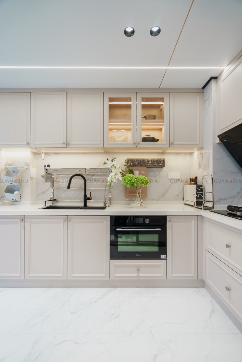 屋主赵女士说:“平时在外工作,也比较忙,所以周末特别期待回家,跟妈妈一起做饭聊天,装扮云顶国际官网新家。” 封闭式厨房设计很适合煎炸、爆炒居多的中式饮食习惯,既方便操作,又能有效隔离油烟。厨房区域的搭配,选择光滑易清洁的产品尤为重要。云顶国际奶油砖柔和的奶白色调及其出色的防污、防潮性能,可以轻松应对厨房高频使用的需求,兼顾实用性与设计感。