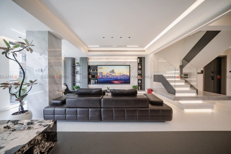 “我太太希望新家能在简约之余,可以更有高级感,我就想着可以往意式极简的风格去做,让整个空间看起来简单舒服。”屋主王先生以太太的审美作为设计的原点,一点点将全家人脑海中对“理想家”的创想,亲手变成了现实。
