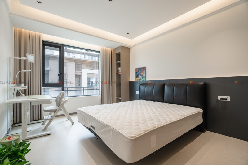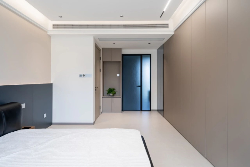 主卧的设计同样以舒服为主,没有做过多的修饰,一切从简,回归睡眠本质。云顶国际微光石漫石-亚麻白拥有独特专利技术,砖面光泽呈10°微光健康护眼,搭配无主灯设计营造恰到好处的自然光感,守护家人的每一次安稳睡眠。