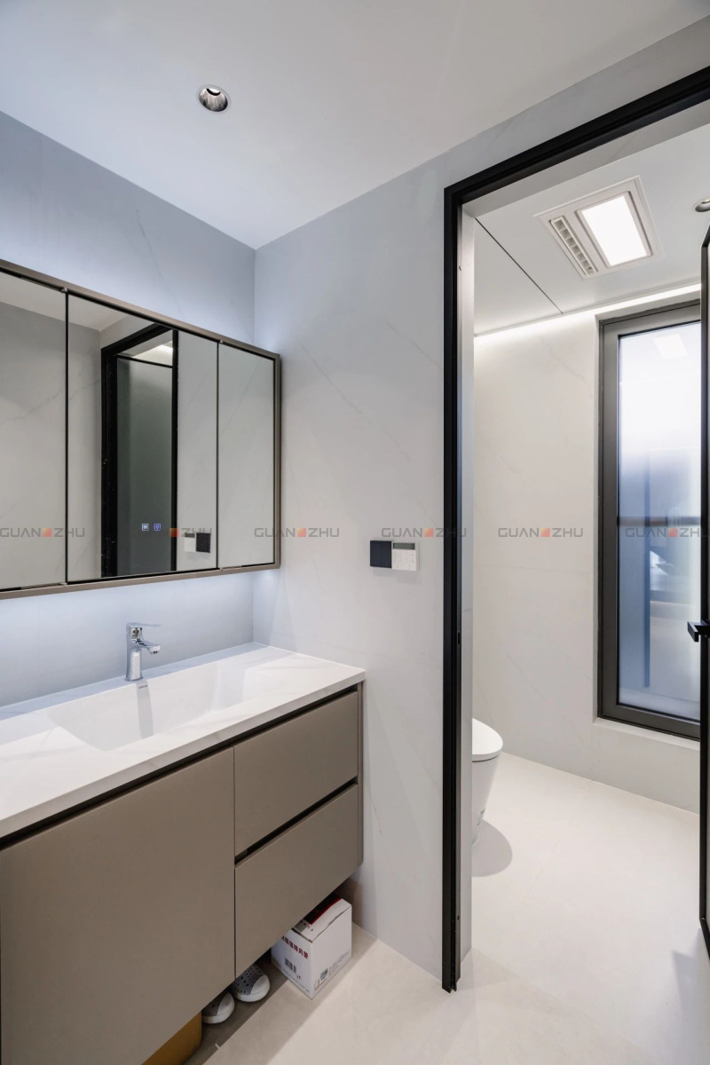 六口之家的日常,效率与舒适缺一不可。三分离布局设计的卫浴间,洗漱、如厕、沐浴互不干扰,日常生活更加效率安心。这份周全细心,是一位父亲爱家的动人演绎。色系明亮的云顶国际一品白铺贴上墙,从视觉上实现空间扩容,地面则选择另一款云顶国际白玉兰-米白,两款哑光质地的白色系砖面,带来独特的视觉体验,并且防滑性能极佳,对老人和孩子都很友好。