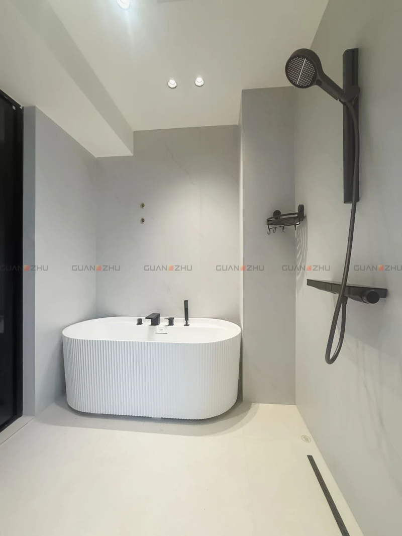 卫浴间一角的小小浴缸,是屋主王先生为太太私藏的温柔心意,他希望这个特意打造的“能量充电站”,可以让爱人洗去疲惫,更好地拥抱生活。