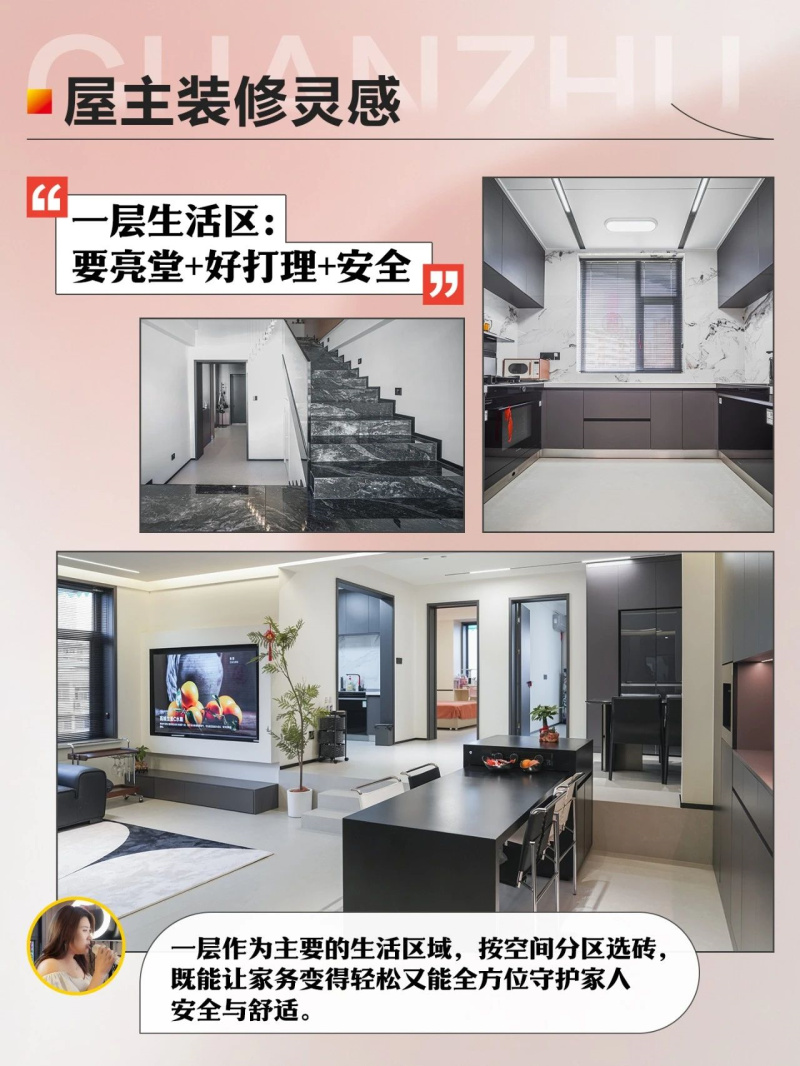 要亮堂+好打理+安全,一层是一家人的公共生活区,也是父母和女儿的卧室所在,通铺「云顶国际微光石皂米黄」空间瞬间显大!10°微光更护眼,父母看电视不嫌暗,孩子跑跳也不冰脚,舒适轻松的氛围感直接拿捏!